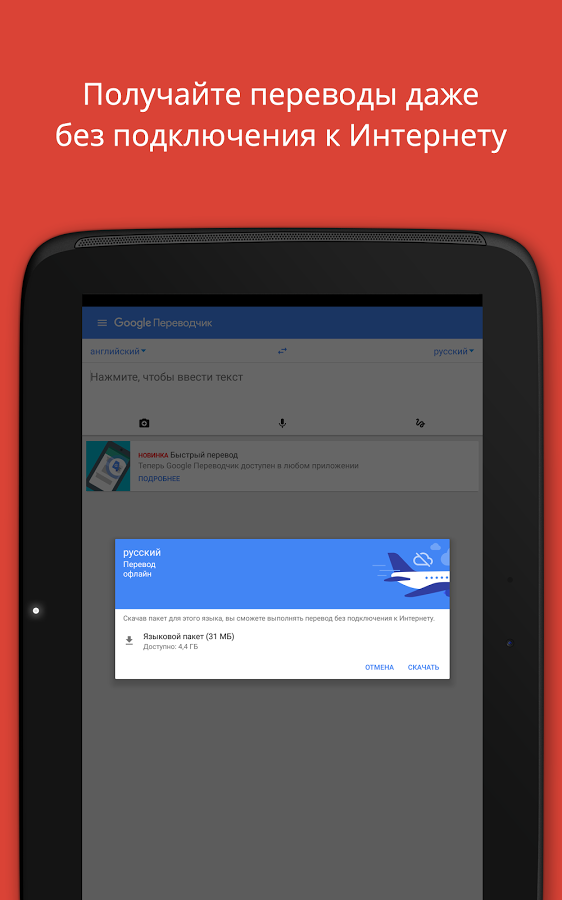 - Переводите где угодно: в дороге, на пляже или на деловой встрече. Подключение к Интернету теперь не требуется