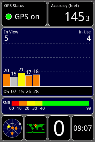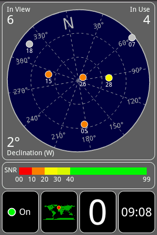 GPS Test — приложение, тестирующее сигнал GPS. Показывает информацию о спутниках, относительно вашего текущего местоположения и времени.