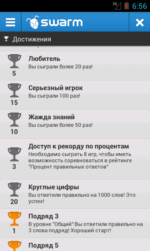 - Система достижений и наград за выполнение заданий и улучшение рейтинга