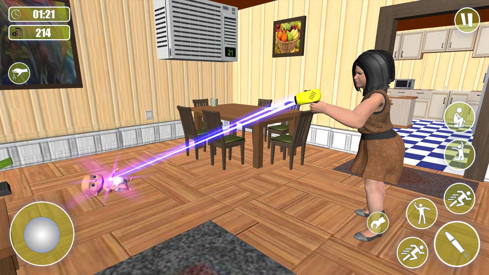 По сюжету игры Grandma House, внук превратился в жуткого монстра. Данный симулятор отличается от игр про бабушку. Это новый взгляд на ситуацию. Младенец – это злобное существо, которое перевернуло с ног на голову жизнь бабули. Она больше не хочет играть в зловещие детские игры. Ваша задача — сбежать из дома бабушки. Но для этого вам придется стать злым ребенком и устроить бабуле настоящий ад.