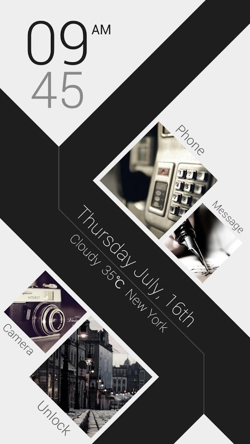 Быстрый доступ к телефону, камере и сообщениями. Отображение именно того, что необходимо: времени, даты, места и погоды.