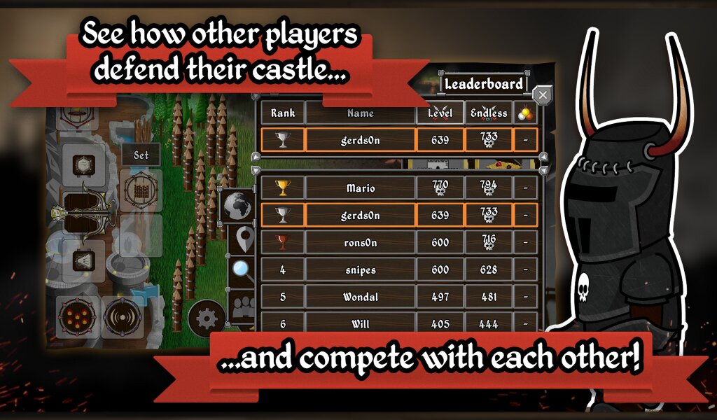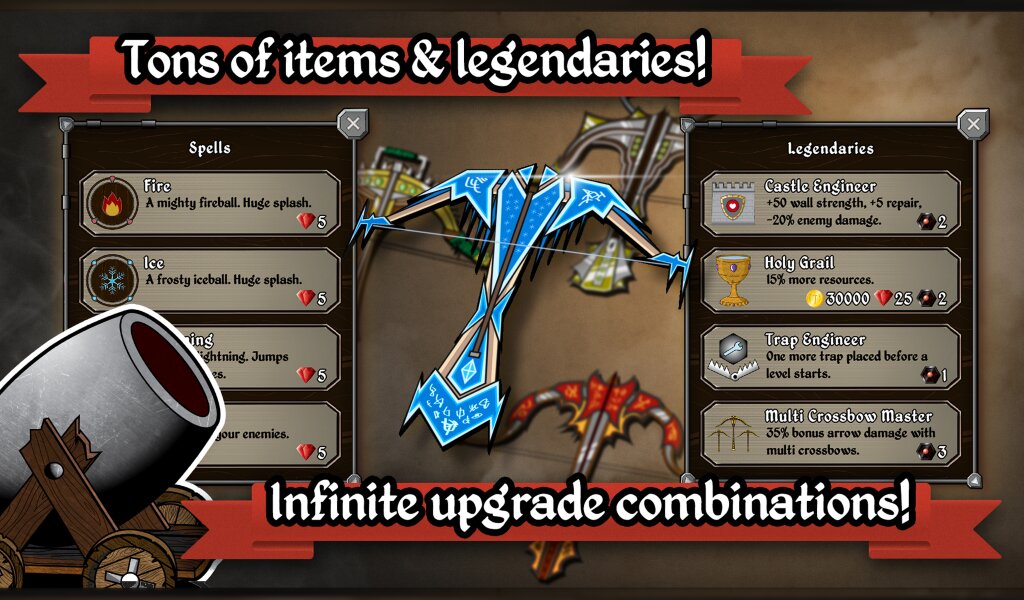 За каждую победу вы будете получать золото и драгоценные камни, за которые можно улучшать оружие и защиту крепости. Наслаждайтесь бесконечными уровнями и постарайтесь выжить как можно дольше. Побеждайте скелетов, чудовищ, некромантов, гладиаторов и многих других врагов. Сокрушите легендарного Дракона! Ежедневно вас будут ожидать различные миссии и квесты, за выполнение которых вы будете вознаграждены. Соревнуйтесь с тысячами реальных пользователей по всему миру за звание самого лучшего стратега!