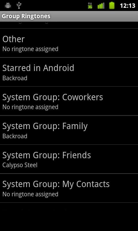 Это простое приложение позволяет назначить мелодии для существующих групп в списке контактов.