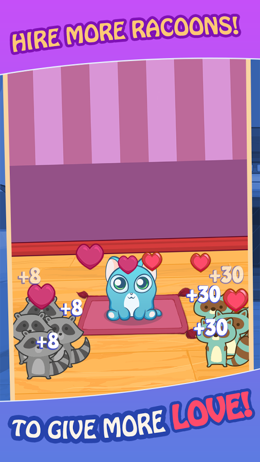 Приветствую! Все, кто не может без залипания в телефоне — это игра для вас! Новый кликер по выращиванию зверушки. В общем кликаем, помогаем коту расти, осыпаем любовью и сердечками, обставляем комнатку, нанимаем милых енотов, ставим лайки и оставляем пожелания и комментарии =)