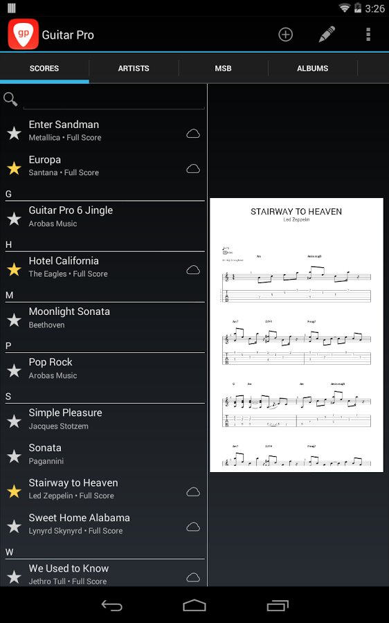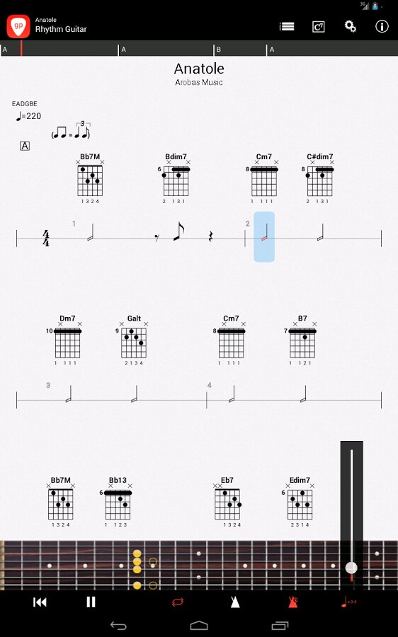 Это мобильная версия знаменитой Guitar Pro программы является идеальным компаньоном для Вас, чтобы практиковать свои любимые песни и поделиться ими в любое время, в любом месте. Guitar Pro приложение позволяет всем гитаристам сыграть свою табулатуру везде прямо со своего устройства.