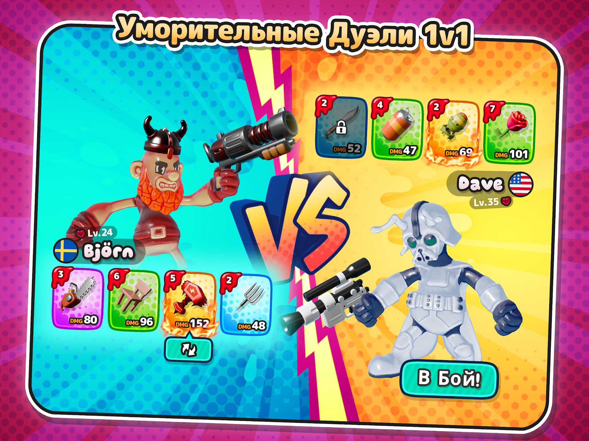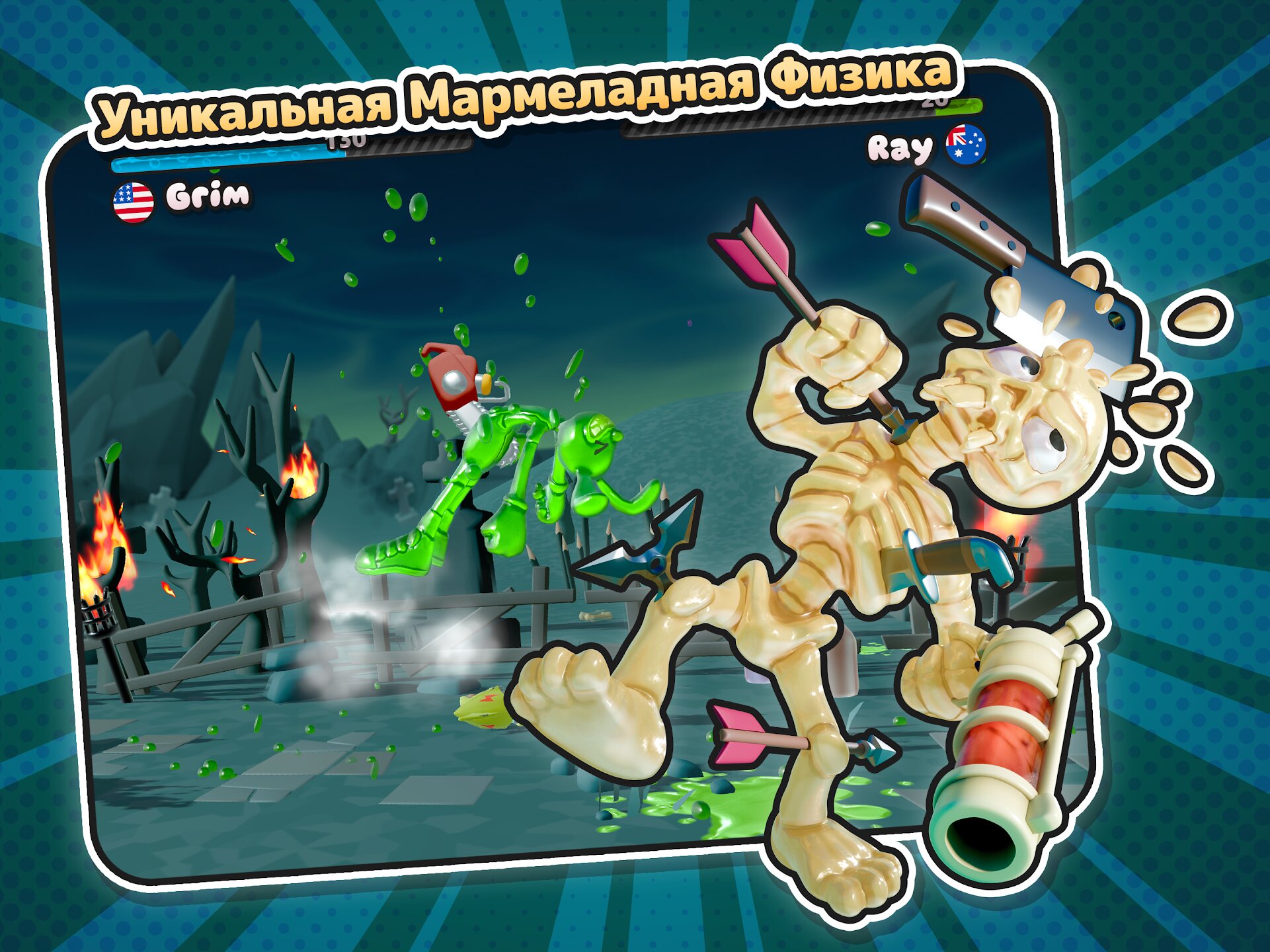 - Веселые пошаговые дуэли с уникальной «желейной» физикой.