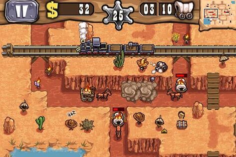 Guns'n'Glory- В переводе «Оружие и Победа» Эта игра из типа «Защита башнями», действие в которой происходит на диком западе, но в Guns'n'Glory вместо башен банда отчаянных головорезов которые гонятся за золотишком убивая поселенцев, но при этом ваша задача не давать им сбежать, иначе они расскажут о вас ШЕРИФУ и вам не сдобровать…