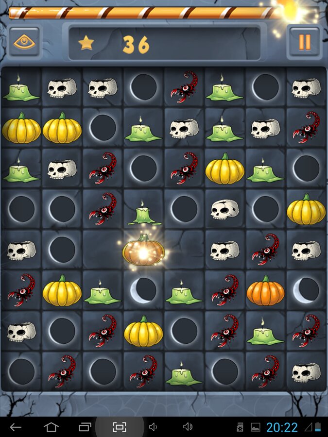 Halloween Match Puzzle — Это великолепная тематическая игра из жанра «три в ряд», сделанная в стиле Хэллоуин. Вам придется за определённое время убрать как можно больше фишек с поля. Для этого используйте бонусы и зарабатывайте баллы. Вас ждут разнообразные бонусы и многочисленные жуткие уровни. Соберите как можно больше баллов и поделитесь со своими успехами с другими в таблице лидеров. Игра порадует вас также и прекрасной графикой, и великолепным музыкальным оформлением.