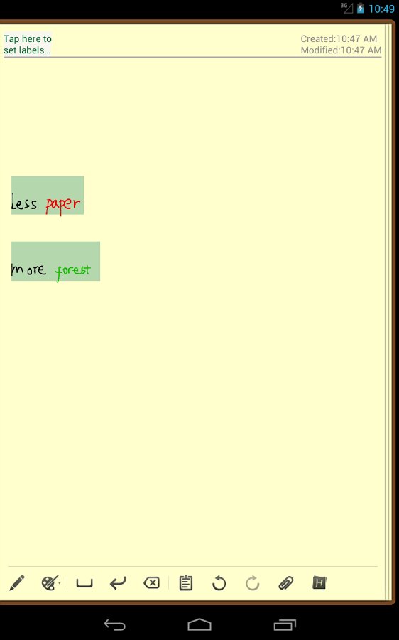 Создание рукописных заметок. Записывайте любые свои идеи с помощью программы Handrite Note прямо на экране вашего Android устройства. В отличие от других программ, Handrite Note позволяет создавать и сохранять различные виды «авторучек,» корректировать толщину линии и цвет с учетом ваших потребностей, выбирать между 14 различными стилями «бумаги», изменять размер текста и межтекстовый интервал для удобочитаемости.