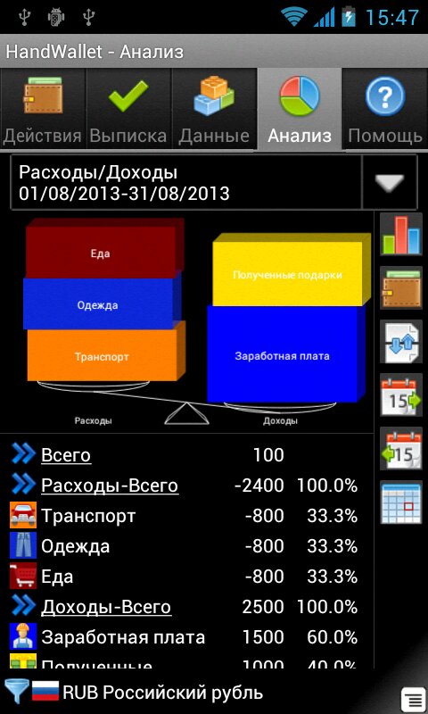 Интерактивные графики личных и семейных доходов и расходов помогут наглядно сориентироваться в ваших финансовых потоках.