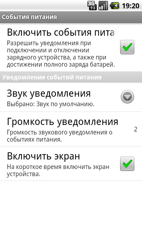 Некоторые устройства никак не реагируют при подключении или отключении источника питания. С помощью HandyPhone можно настроить звуковое уведомление при подключении или отключении источника питания, а также при достижении полной зарядки батареи.