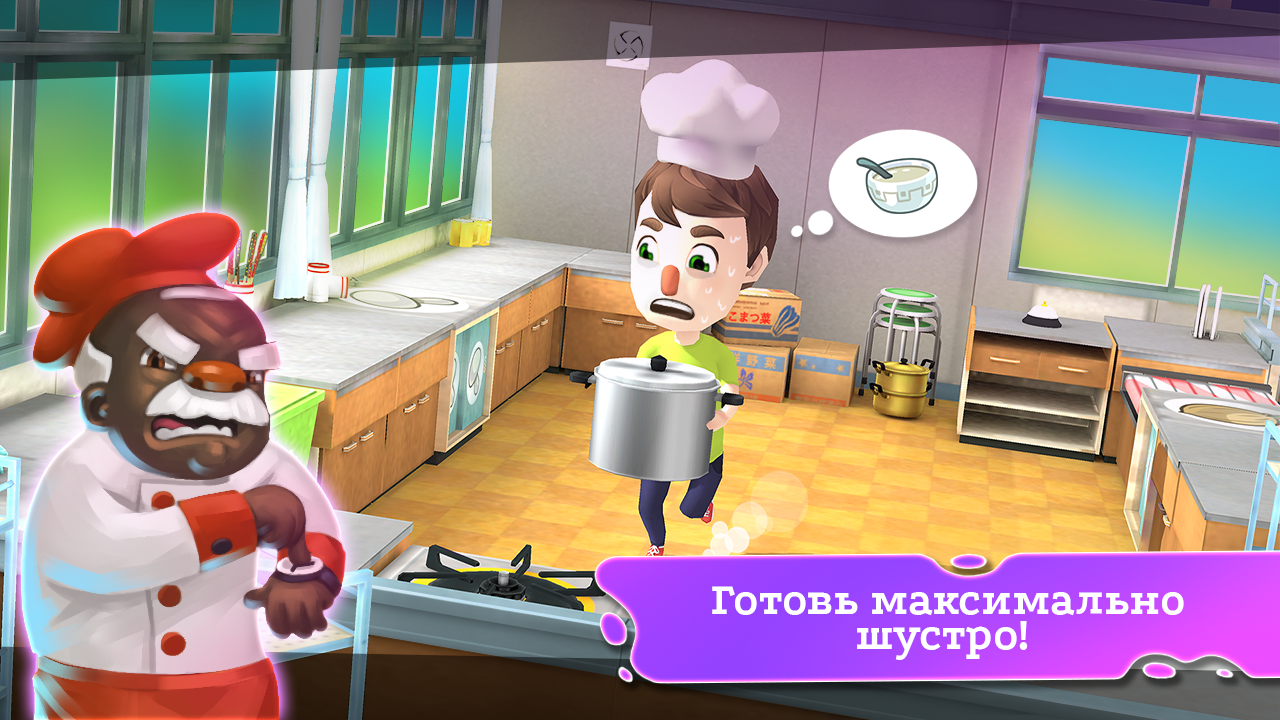 Успевай готовить еду вовремя, чтобы клиенты оставались довольными, а ты зарабатывал все больше! Передвигайся по карте и открывай новые кухни, которым нужен быстрый сумасшедший повар!