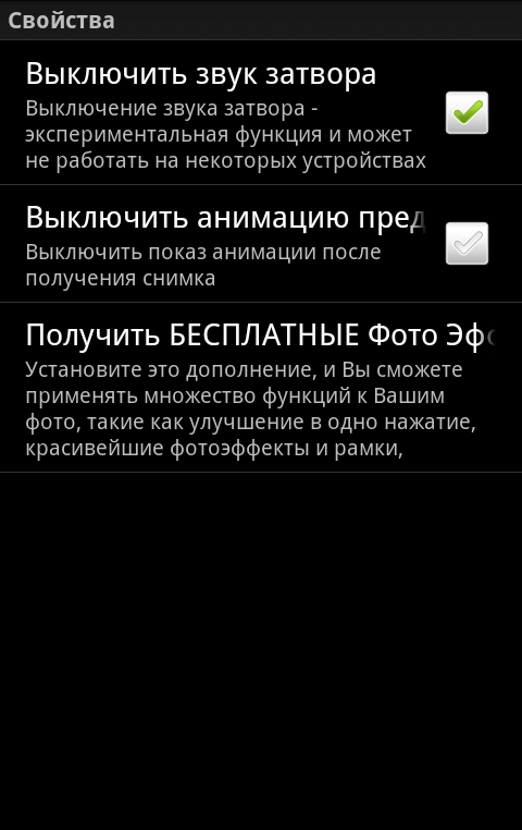 HD Камера Ультра — полезное приложение для Android, с помощью которого пользователь сможет существенно расширить функциональные возможности встроенной камеры своего устройства, превратив его практически в самый настоящий цифровой фотоаппарат. Присутствует оптический/цифровой зум, различные режимы фокуса (авто, бесконечный, макро), возможность настройки баланса белого (авто, дневной свет, лампа накаливания и пр.), экспозиции, дополнительные фотоэффекты. В настройках можно отключить звук затвора, включать/отключать анимацию после получения снимка и т.д.