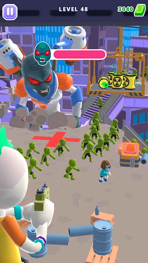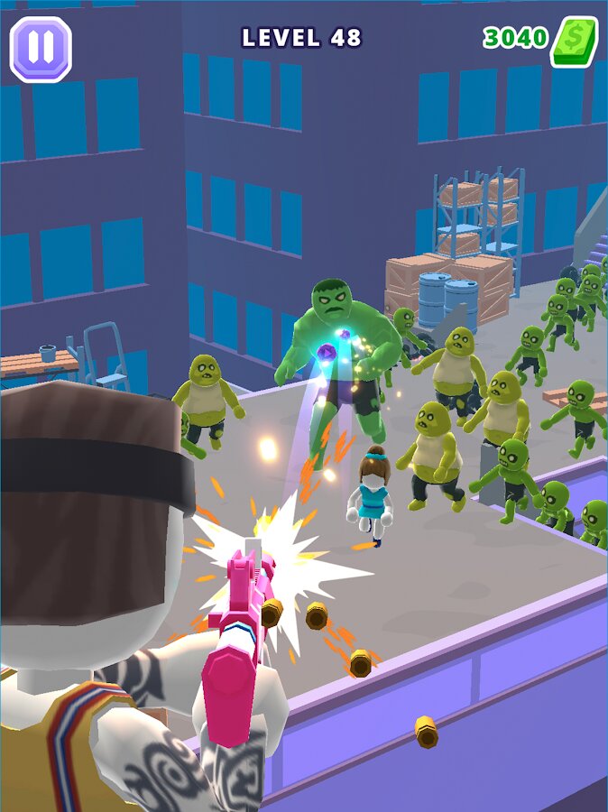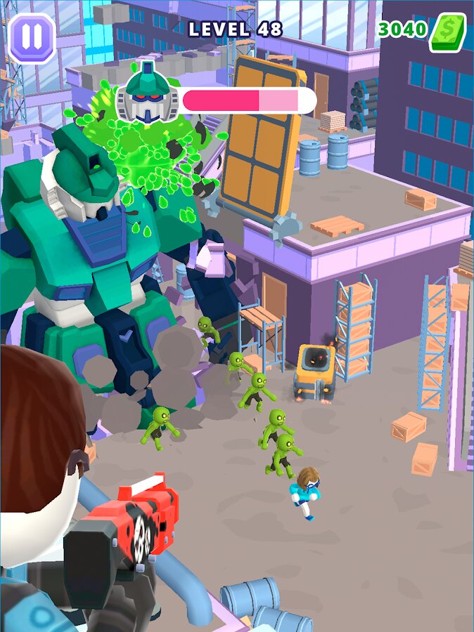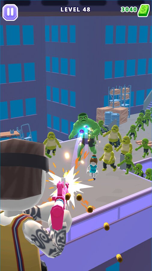 - 🚁 Подходящее оружие: Вы начинаете игру с простым пистолетом, всех гигантских монстров из него не перестрелять. Проходите уровни и зарабатывайте деньги, чтобы улучшать свое оружие. В арсенале можно переключаться между его типами и выбрать то, что лучше всего подходит для того или иного уровня.