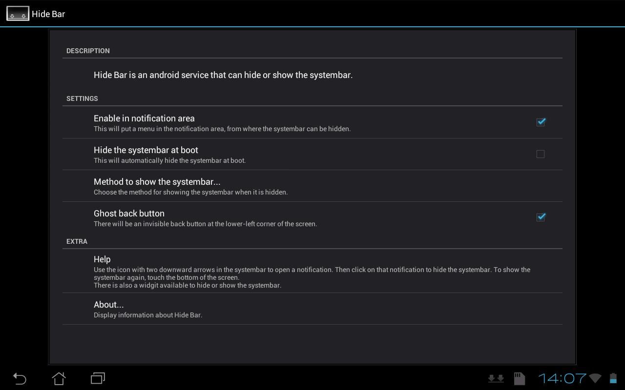 Вам наверное хоть раз мешал нижний бар планшетов например при игре или при просмотре фильма, но теперь с помощью hide bar его можно свернуть! Программа требует root!