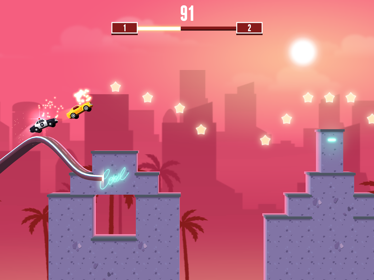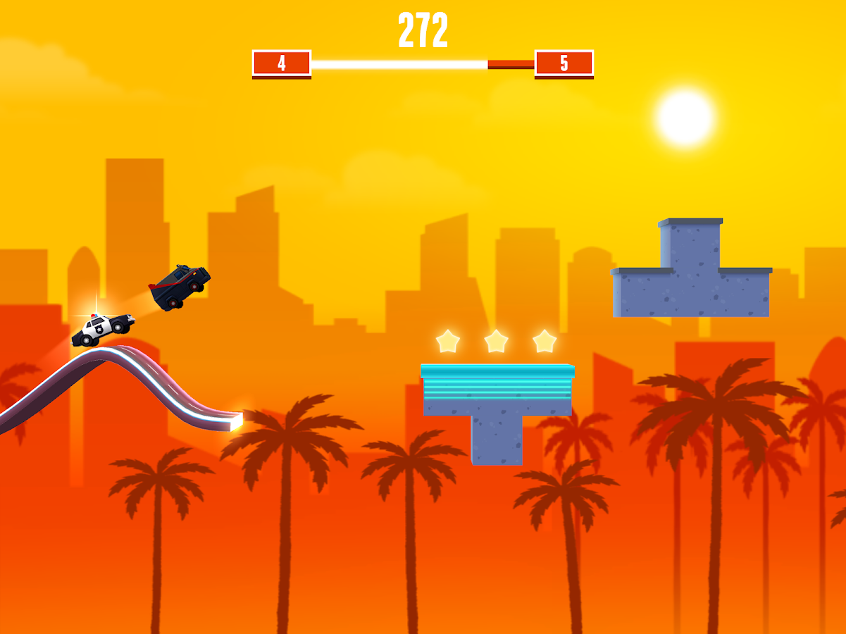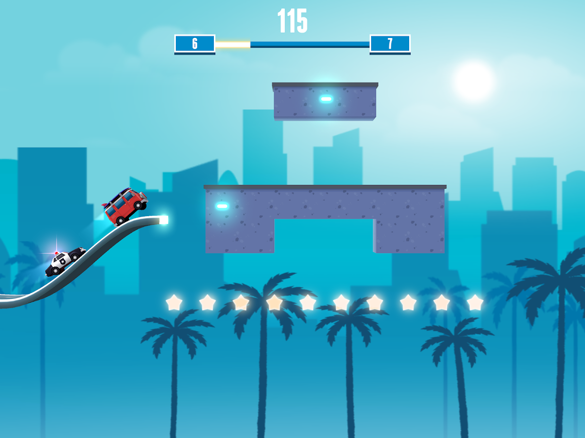 Только представьте: в этой игре вы управляете дорогой, а не машиной. Да-да, ваша задача — изменять высоту дороги, по которой постоянно мчится автомобиль, а вслед за ним и копы. Сложность заключается в том, что вам предстоит не просто собирать монетки, но и миновать ограждения — поверьте, делать это не так легко, как кажется со стороны. Дело в том, что машина не примагничена к дороге — с каждым резким трамплином она подлетает вверх и становится неуправляемой. Чаще всего, именно в эти моменты и происходят аварии, который вынуждают начинать уровень сначала. По достижению финиша, вам показывают статистику: количество собранных монет, сколько полицейских машин вы уничтожили и подобное. С каждым новым уровнем меняется фоновая локация, благодаря чему Highway Heat долго не наскучивает. К тому же, в игре есть побочная цель: накопить внутриигровые деньги на новые автомобили. Всё это делает данную гонку отличным аркадным таймкиллером, который заслуживает быть установленным на вашем смартфоне.