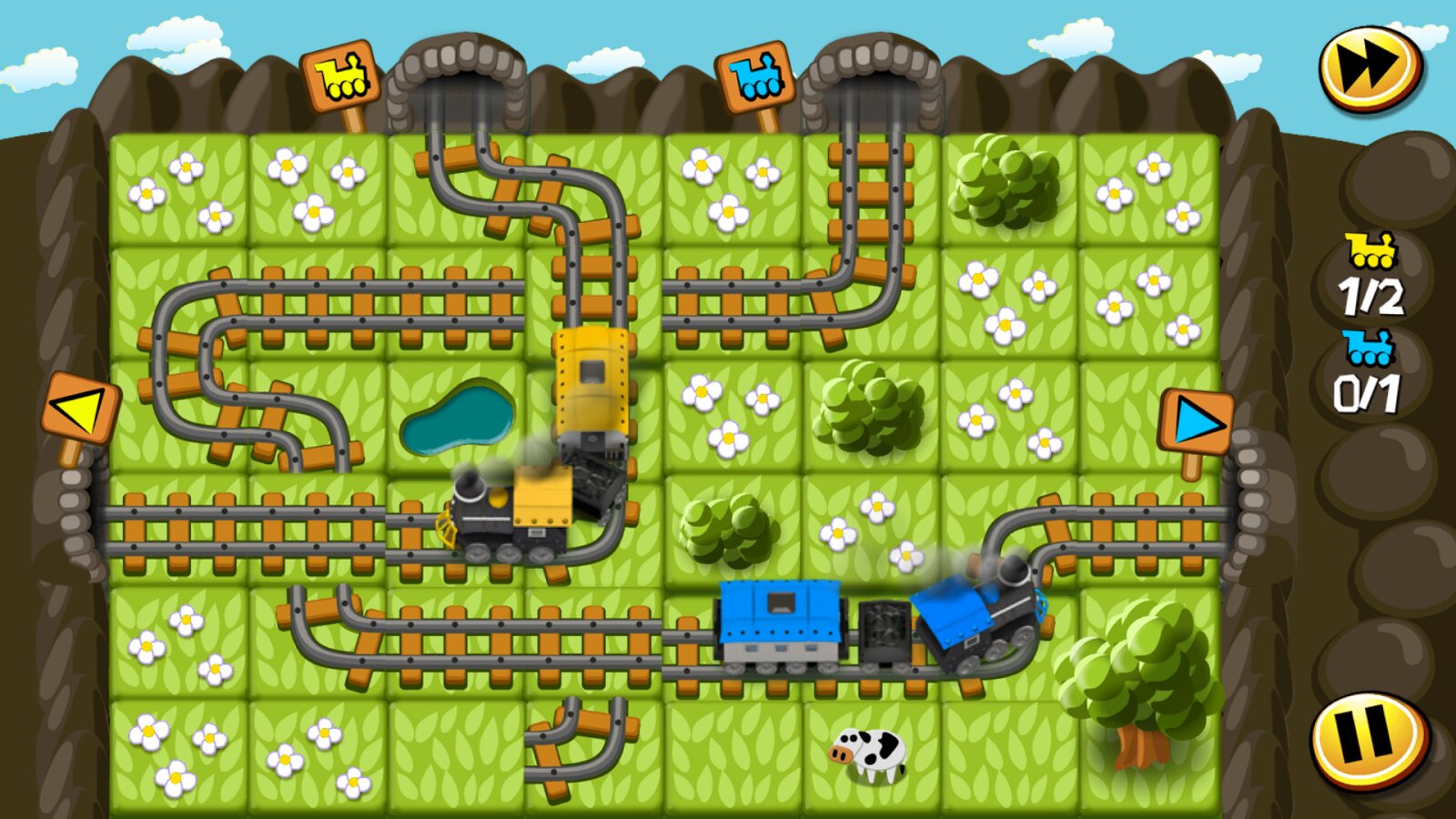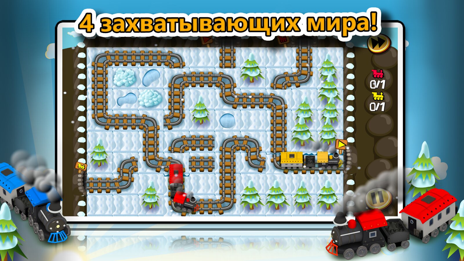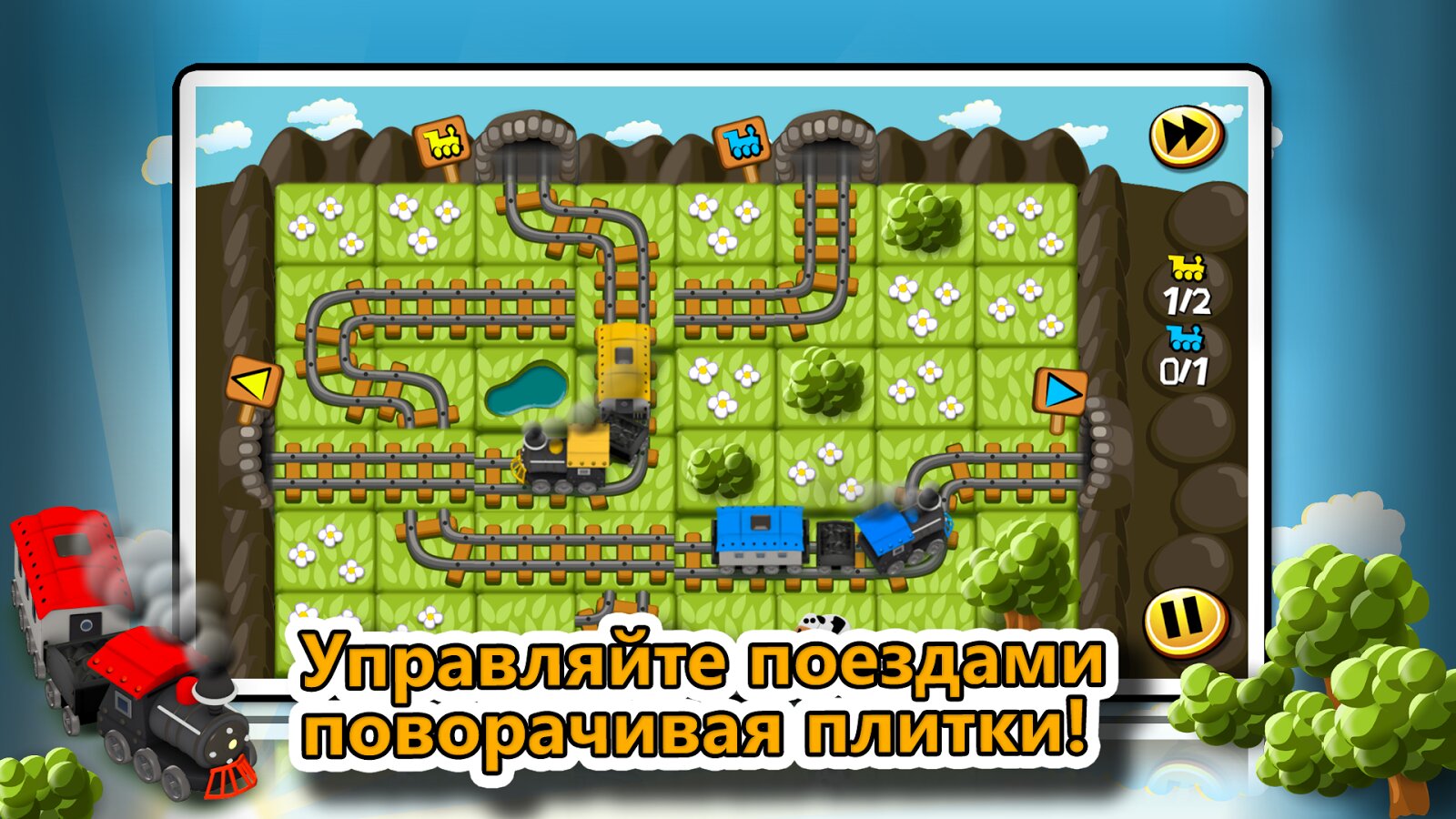 Train-Tiles экспресс — Простенькая головоломка на андроид, в которой вы будете прокладывать дорогу поездам. Пора узнать, получится ли вам стать настоящим железнодорожным инженером? Вас ждет сто двадцать уровней в четырех красочных мирах, от простых и тихих лесов, до опасных вулканов.