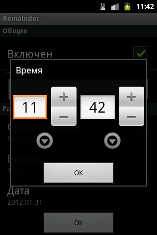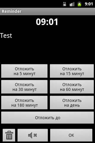 - Опция “мягкий режим”. Если телефон используется (экран включен и запущена какая либо программа кроме рабочего стола), то напоминание появляется только в области уведомлений. Если после этого телефон будет выключен или стороння программа завершена, в течение минуты, напоминание сработает как обычно.