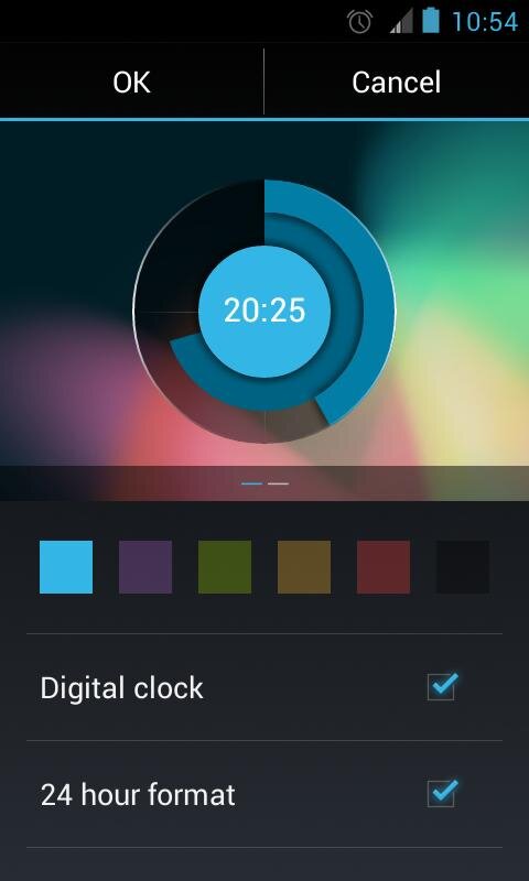 Holo Clock Widget — виджет имеет 2 скина для часов, 6 цветовых тем и удобный экран настроек.