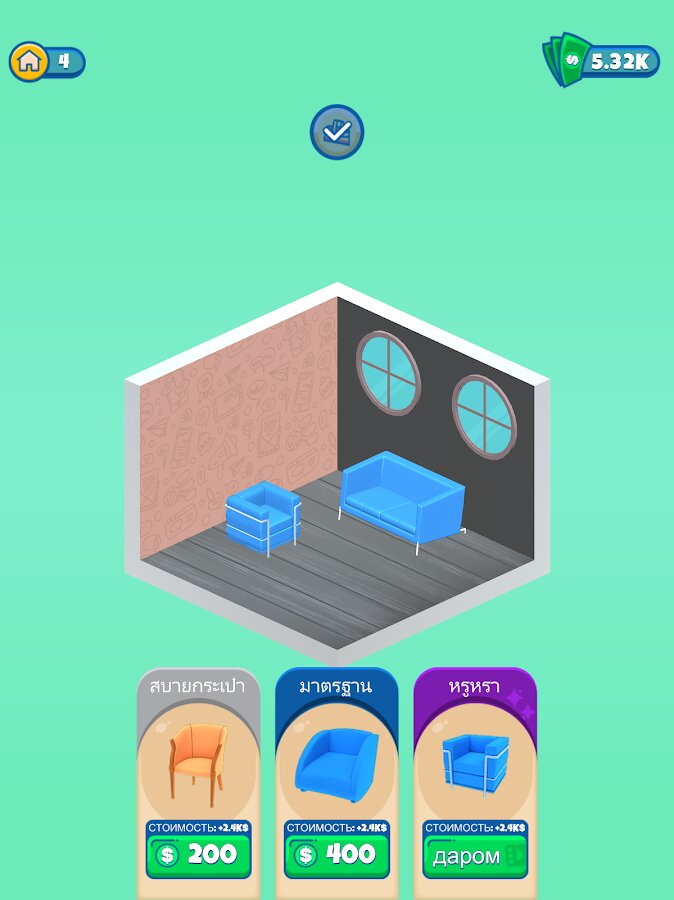 Хороший ли у вас вкус? Давайте проверим! Огромный выбор обоев, красок и элементов декора в вашем распоряжении. Но для начала все же желательно отремонтировать стены, отмыть пол, очистить окна и починить технику. Продавайте свои шедевры по самой высокой цене, чтобы на будущее как следует закупиться новой мебелью, стройматериалами и прочими мелочами!