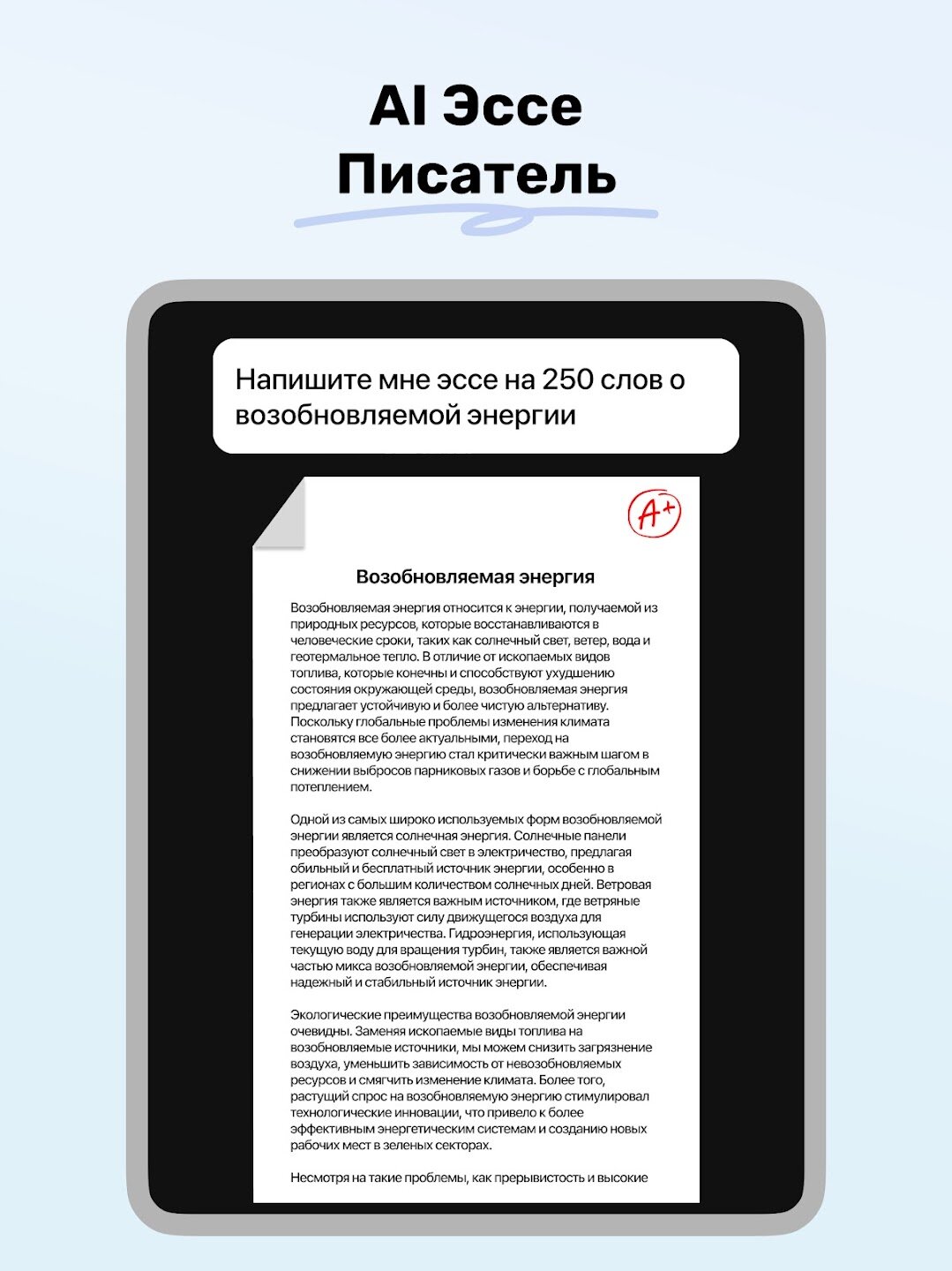 Приложение оснащено усовершенствованным инструментом для написания эссе, который помогает на всех этапах процесса написания. От первоначального мозгового штурма и создания структурированных набросков до генерации полных, хорошо проработанных эссе — этот инструмент гарантирует высокое качество письменных работ.