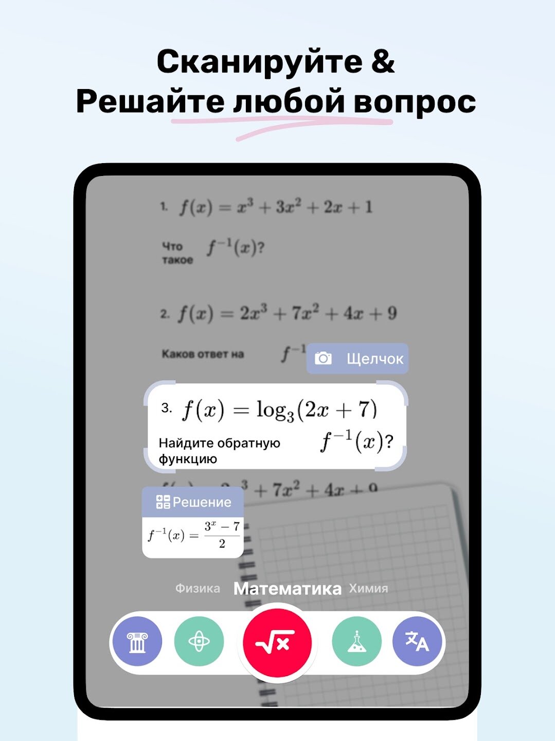 - Математический решатель на базе искусственного интеллекта с пошаговыми объяснениями.