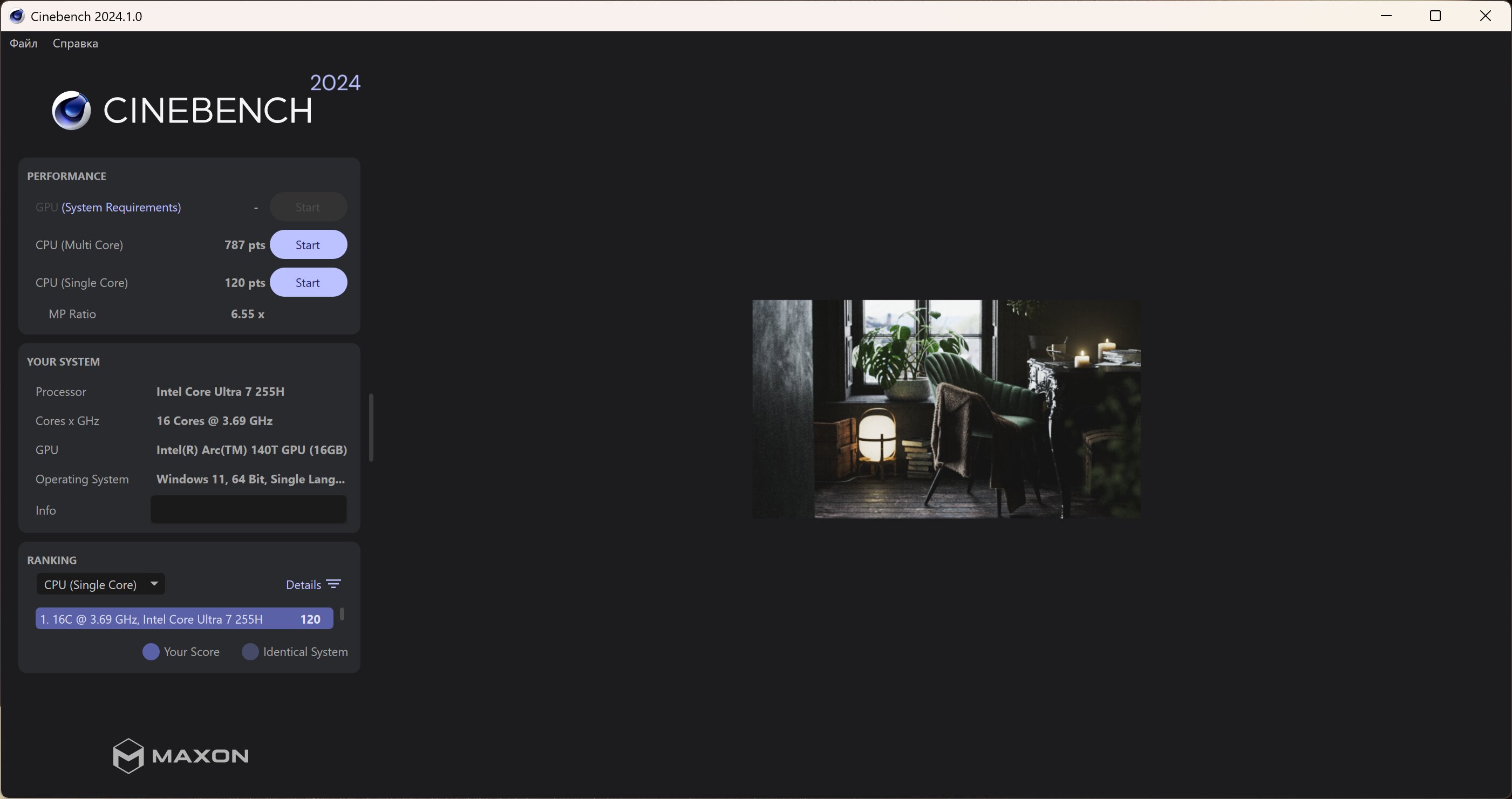 Установленный внутри этой модели Intel Core Ultra 7 225H на 16 потоков и 16 ядер с частотой до 5,1 ГГц (в турбо) изначально задал высокую планку моих ожиданий, поскольку новейший чипсет с нейронным блоком, в связке с 32 ГБ оперативной памяти типа LPDDR5x (8400 МГц) и 1 ТБ накопителя типа PCIe 4.0, вряд ли будет работать плохо под нагрузкой, не говоря уже о повседневных задачах.
