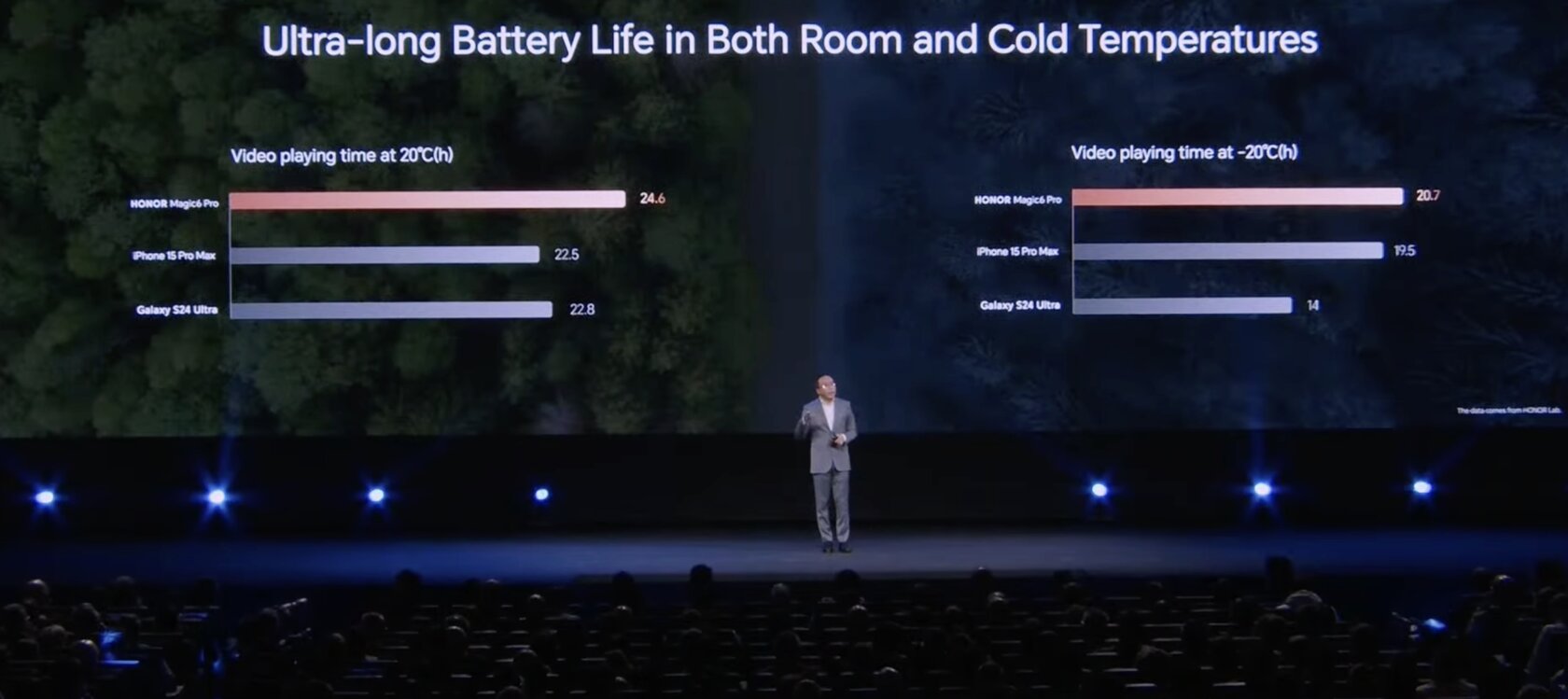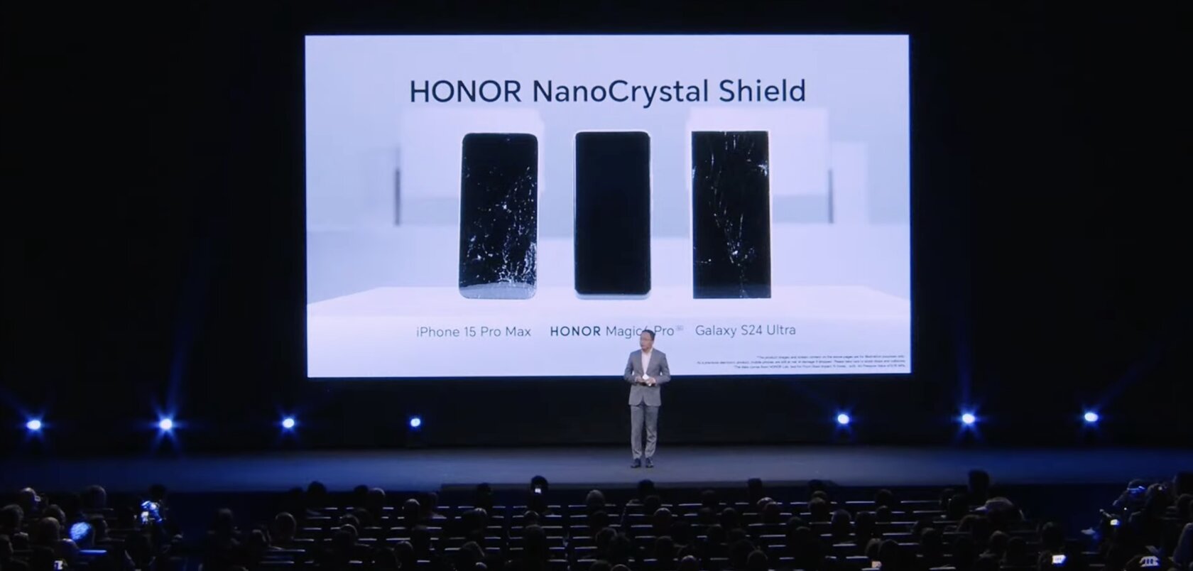 В рамках мероприятия СЕО компании HONOR рассказал о ещё одной довольно важной особенности Magic6 Pro — речь о покрытии NanoCrystal Shield, которое делает смартфон более прочным. В результате флагман, который может показаться хрупким и уязвимым, легко выдерживает падения на твёрдую поверхность без единого повреждения. В рамках презентации даже был показан ролик, как в лаборатории компании смартфонами топового уровня «выстреливали» друг в друга — iPhone 15 Pro и Samsung Galaxy S24 Ultra такого столкновения не пережили.