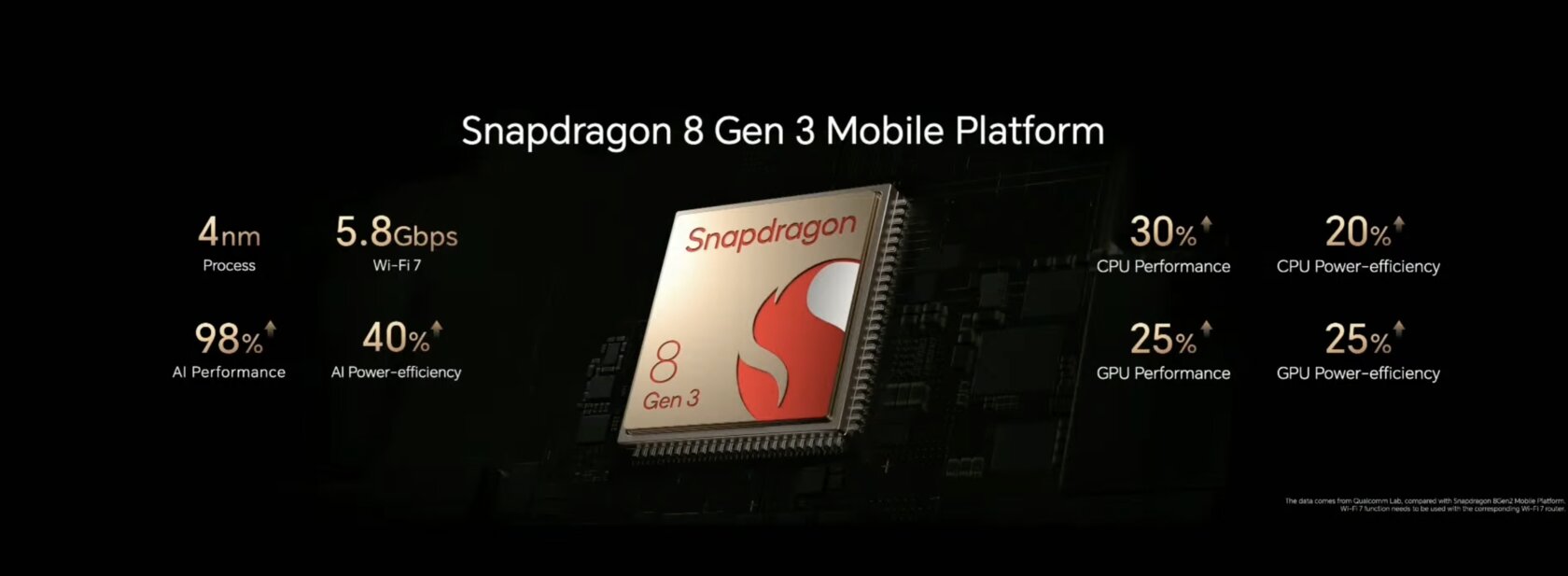Естественно, «железо» здесь тоже флагманское (Qualcomm Snapdragon 8 Gen 3 с 12 ГБ ОЗУ), но так как этим уже никого не удивишь, производитель решил сделать акцент и на других компонентах смартфона.