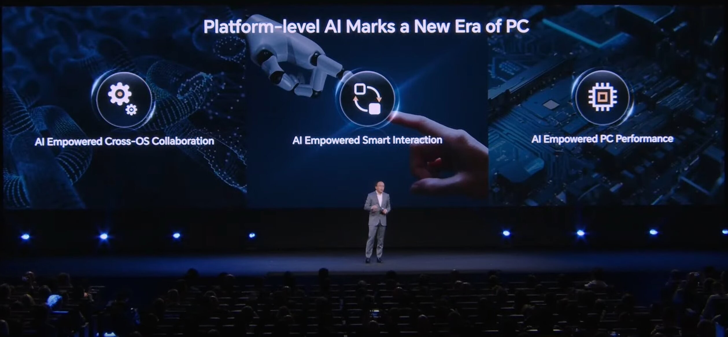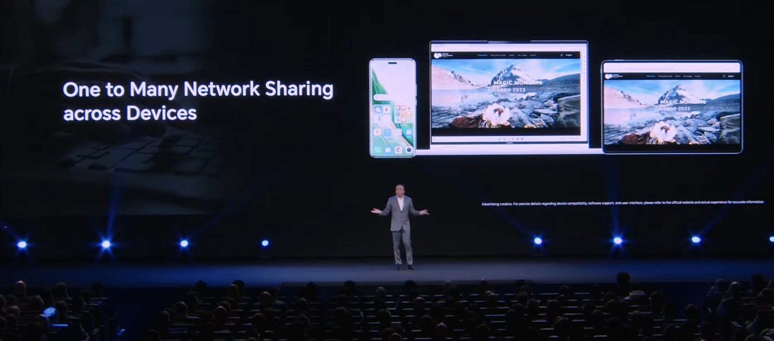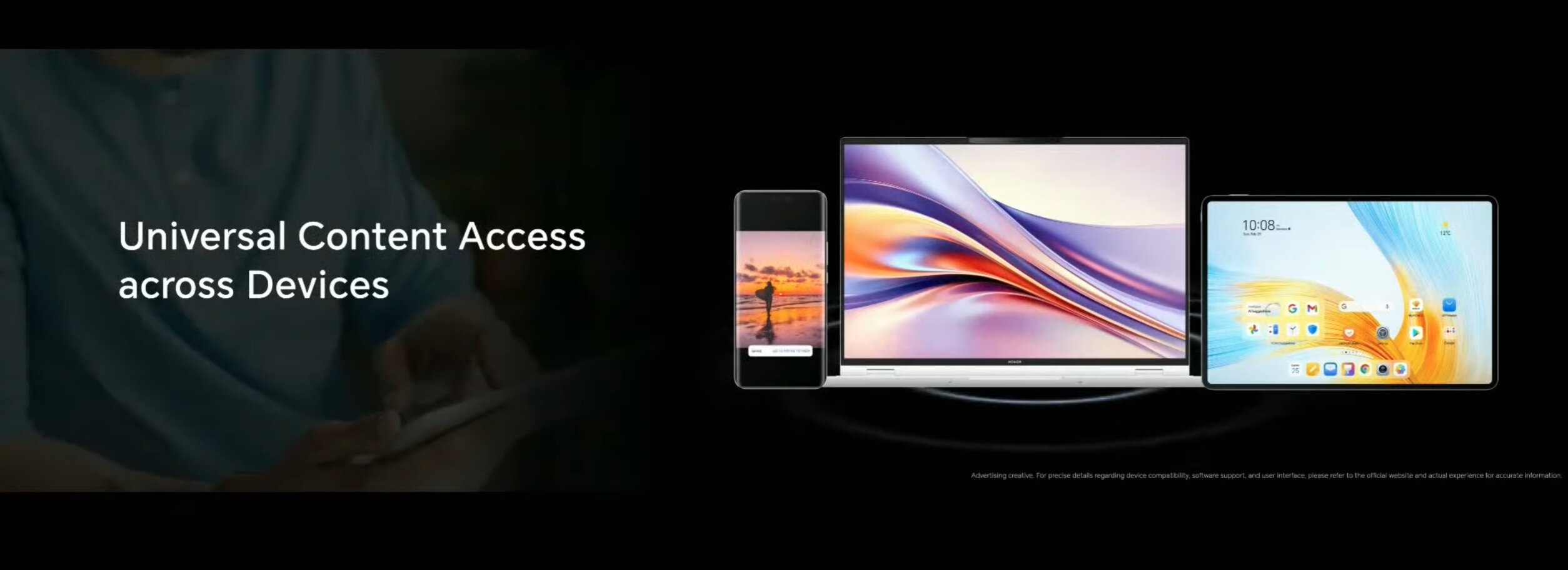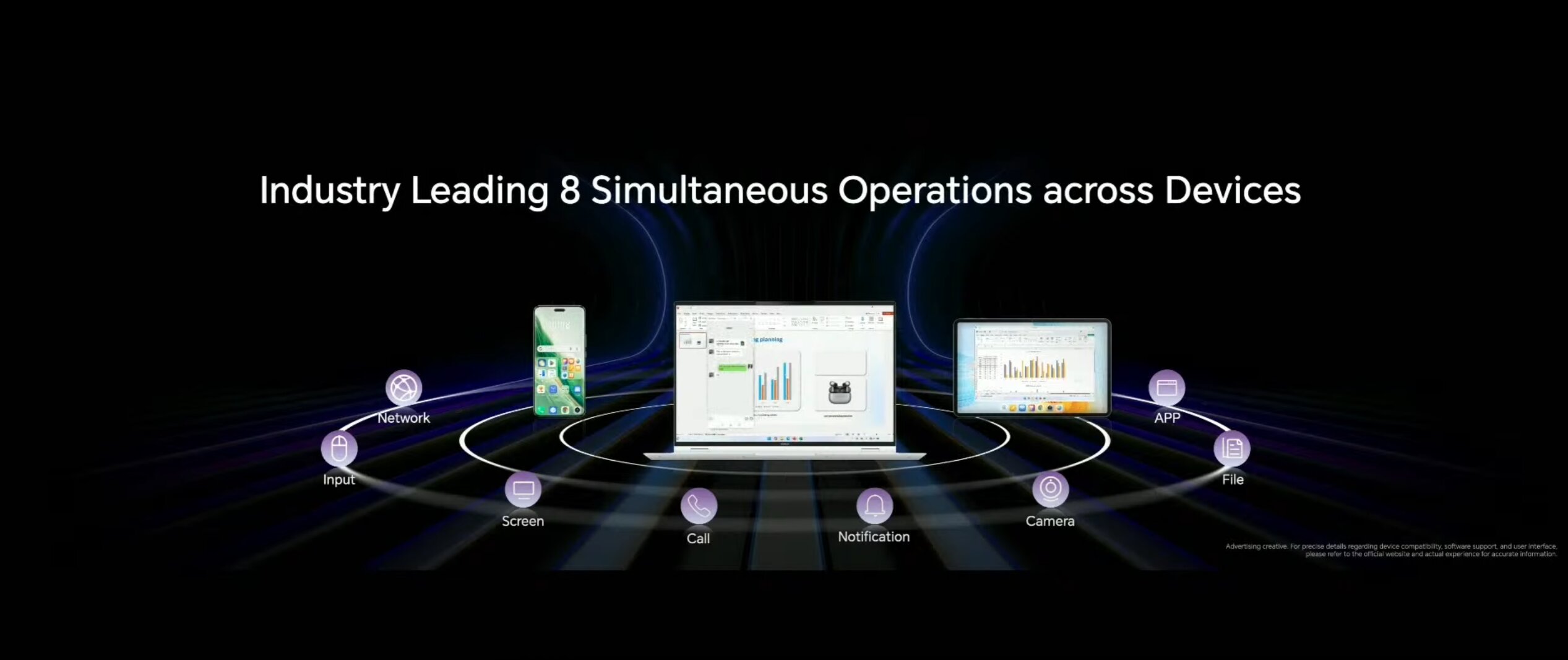 Например, компания уделила немало времени технологиям на базе ИИ — этому посвятили около четверти всей презентации. Эти технологии задействованы в том числе в MagicBook Pro 16 — ноутбук посредством искусственного интеллекта получает прирост производительности, а также позволяет взаимодействовать с различными гаджетами в режиме кроссплатформенности. Можно всего в одно нажатие (у Apple — в четыре нажатия) перенести окно с электронными таблицами на планшет, удобно передавать файлы между гаджетами, распределять задачи и «делиться» вычислительными мощностями электроники, взаимодействовать со звонками, уведомлениями, управлять устройствами удалённо (можно даже транслировать экран смартфона на ноутбук) и многое другое.