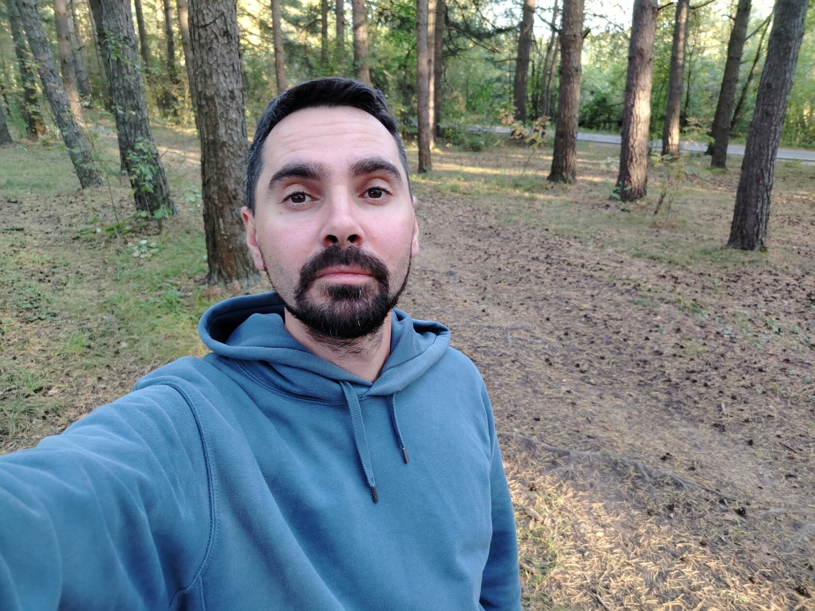 Фронтальная камера на 8 Мп с менее светосильной оптикой f/2.0 тоже с поставленной задачей справляется достойно — кадры резкие, но не слишком, достаточно яркие, сохраняется естественный тон лица и реалистичная цветовая палитра.