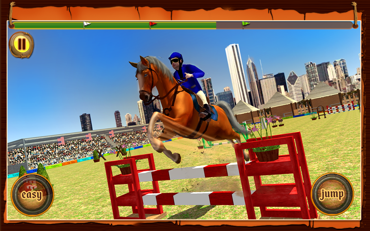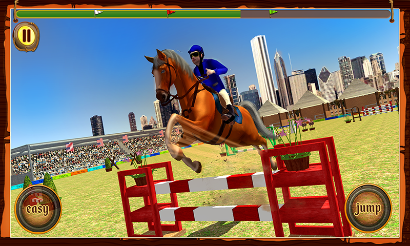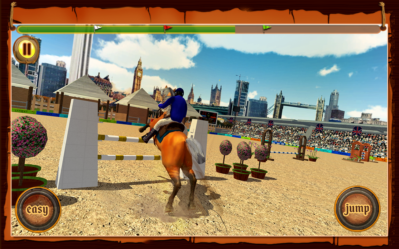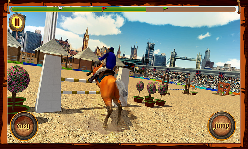 Спортивная игра, где вы будете управлять красивым скакуном и выполнять различные задачи. Выводите своего коня из стойла и выполняйте различные трюки и прыжки, проходя всю трассу безошибочно. Покажите на деле все навыки своего скакуна и выполняйте прыжки на радость зрителям. Касайтесь вовремя экрана своего телефона и заставляйте коня прыгать через барьеры, проходить водные преграды и другие препятствия. Подбирайте правильный момент для проделывания трюка и набирайте достаточное количество очков. Приобретайте новых лошадей и пополняйте свою конюшню новыми лошадями.