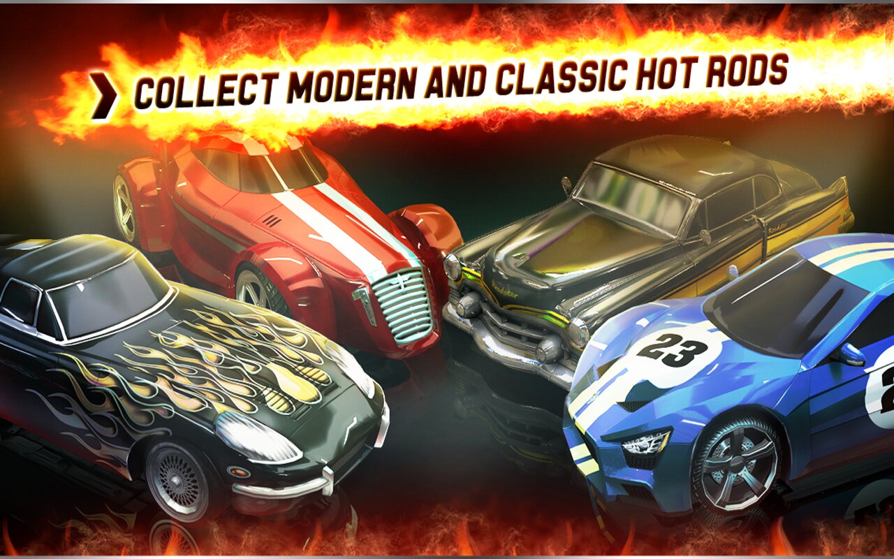Hot Rod Racers — ожесточенные драг-гонки, в которых вам придется биться, в буквальном смысле, за первое место в каждом заезде, используя возможность таранить, подрезать и перекрывать движение противника прямо во время гонки. Зарабатывайте золотые монеты во время заезда, производите апгрейд вашего авто, что бы улучшить его характеристики или просто воспользуйтесь лако-красочными работами, что бы придать своему болиду неповторимый вид. Игра содержит 13 разнообразных сценариев, несколько типоформатов гонок и интеграцию с сервисом Google Play Игры.