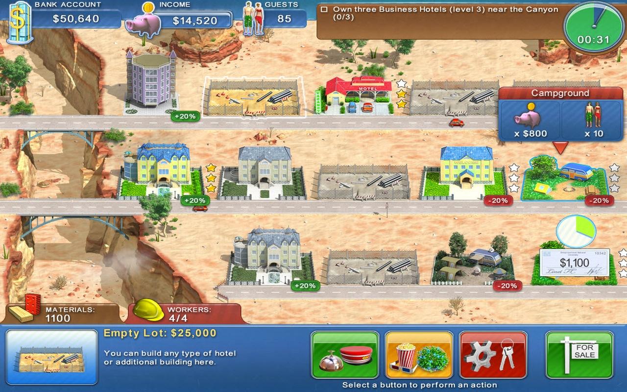 Hotel Mogul - это экономический симулятор напрямую связан со строительным бизнесом. Вам предстоит занять пост директора по развитию компании Golden и наладить процесс строительства новых отелей и кафе.