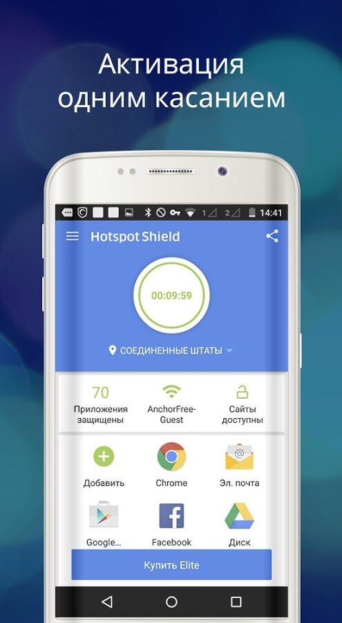 Hotspot Shield VPN – безопасное и надежное VPN-соединение для вашего гаджета. Отличное приложение для анонимности посещения заблокированных сайтов и защищенного использования интернет-ресурсов.