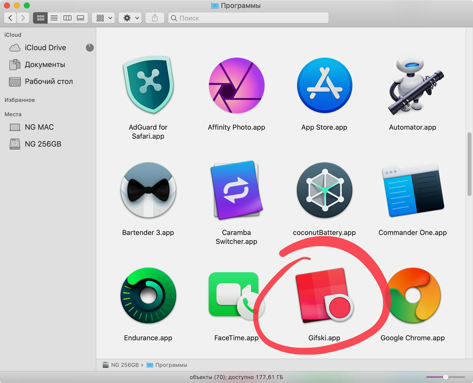 Шаг 5. Ищем дефолтный значок программы с разрешением PNG, ICO или ICNS стандартными средствами Finder.