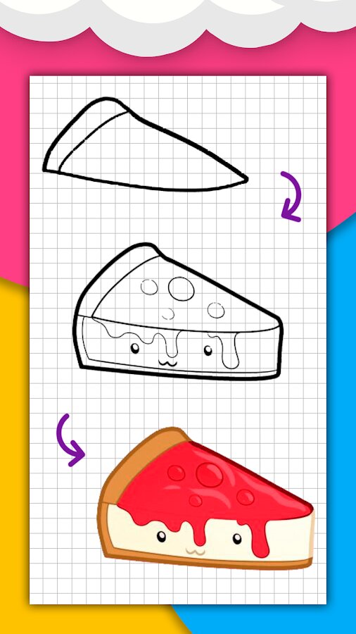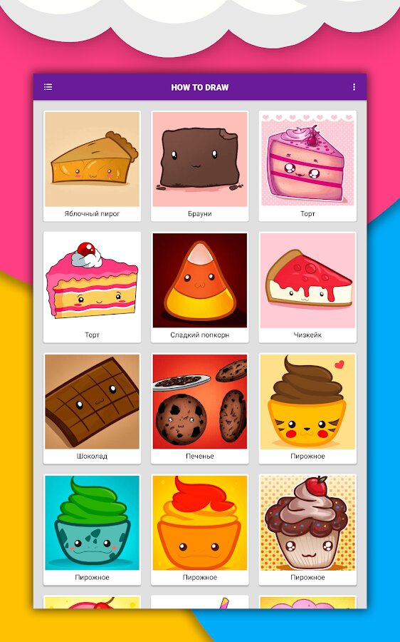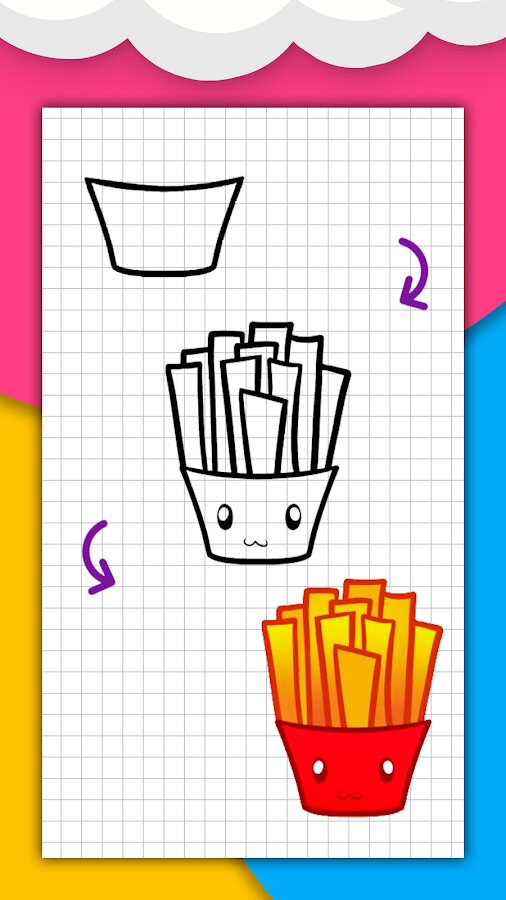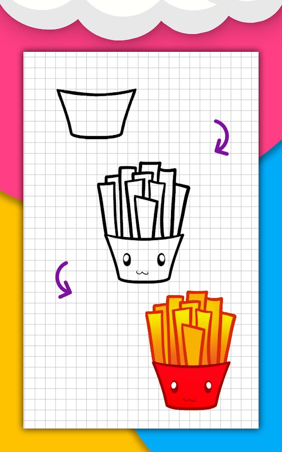 Как рисовать милую еду, напитки пошагово, уроки — пошаговое рисование вашей любимой милой еды. Вы хотите удивить своих друзей или просто научиться рисовать? Тогда это приложение для Вас. Уроки различной сложности помогут вам проработать ключевые аспекты рисования. Вы легко будете представлять, что и как вы будете рисовать. Получайте новые навыки и развивайтесь. Рисование — это весело!