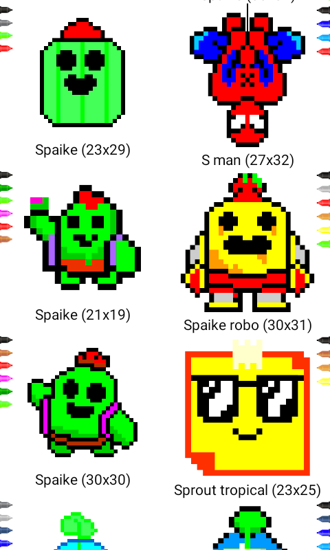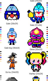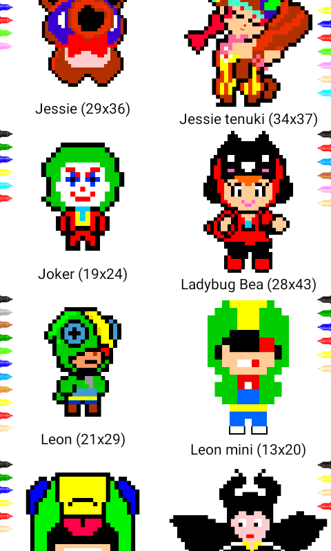 - Десятки предопределенных цветовых шаблонов персонажей с различными цветами пикселями.