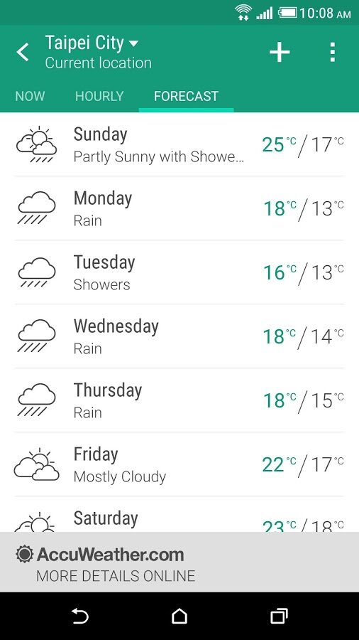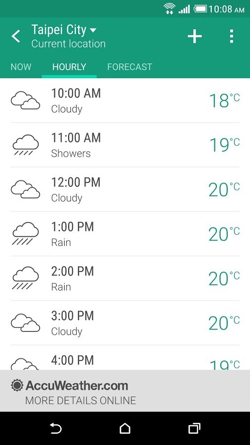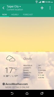HTC Погода предоставляет последние метеоданные для вашего текущего местоположения, а также детальную информацию для городов по всему миру. Узнайте температуру в Тайбэе, влажность в Галифаксе, ощущаемую температуру в Риме, скорость ветра в Уичито, видимость в Вене и время заката и восхода солнца в Сайгоне. Почасовая информация, прогноз на семь дней и местные, национальные и мировые новости о погоде означают, что вы всегда будете готовы к погодным сюрпризам.