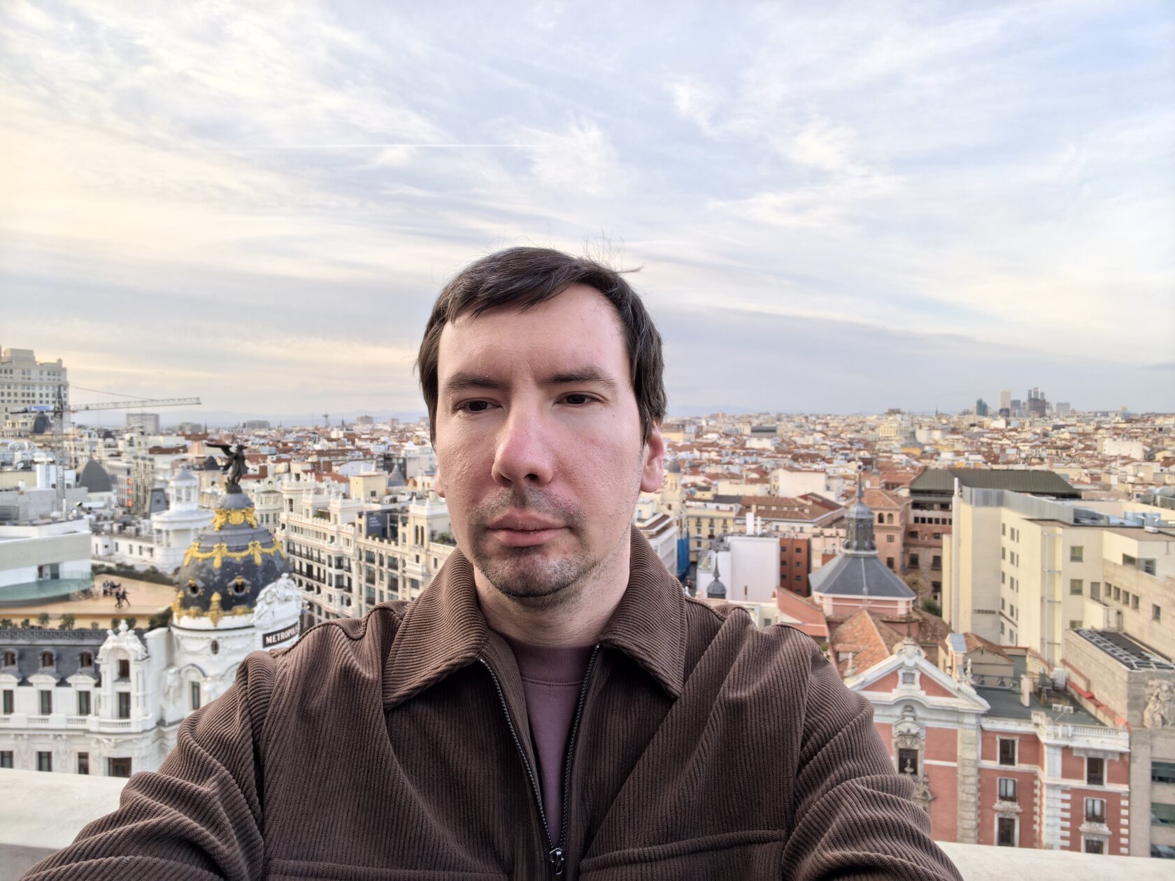 Фронтальная камера на 13 Мп на фоне основной системы, конечно, выглядит немного скромнее, чем хотелось бы. Да, она отлично передаёт цветовую палитру, демонстрирует приличную резкость, умело обрабатывает источники света в относительно сложных сценах съёмки и поддерживает систему автофокусировки, но детализация чуть ниже желаемого, особенно если присматриваться к деталям.