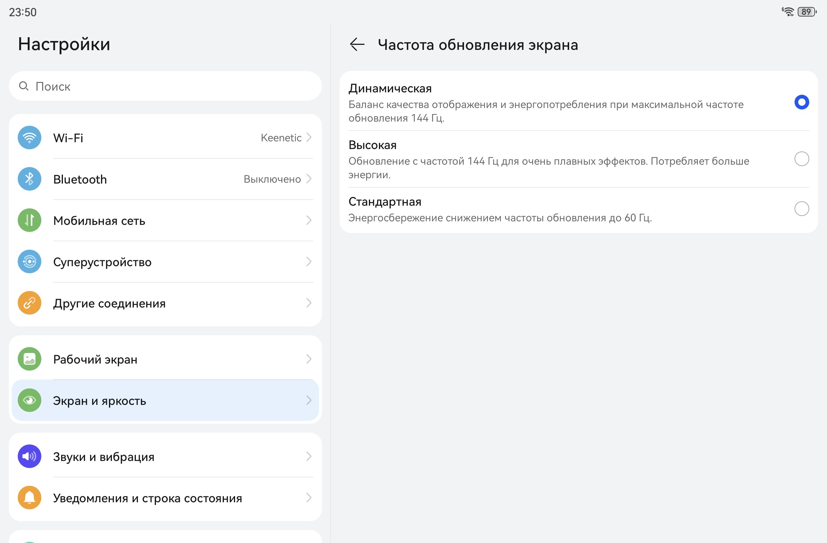 Хотя, конечно, если в этом есть необходимость, пользователь может заблокировать частоту на более низких значениях. Это полезно, например, если нужно выжать из планшета максимальное время автономной работы — высокая частота обновления панели обычно приводит к чуть более быстрому расходу энергии.