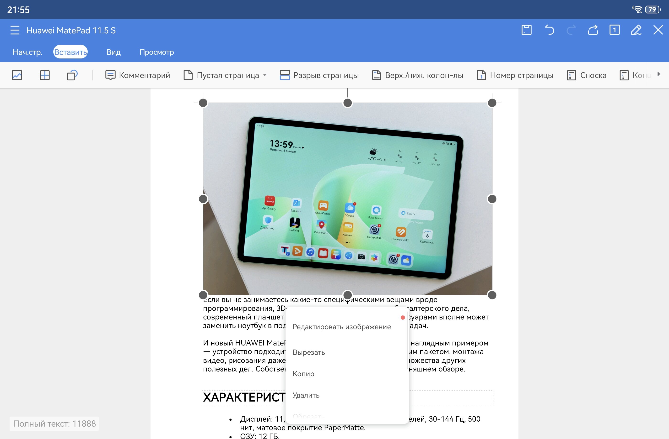 Естественно, ключевым преимуществом планшета HUAWEI MatePad 11,5 S 2026 года можно смело назвать его дисплей — здесь используется 11,5-дюймовая панель с 2.8К-разрешением (2800×1840 пикселей) и соотношением сторон 3:2. Последний пункт особенно важен — дисплей выглядит более «квадратным» по сравнению с более привычными 16:9, что позволяет в альбомной ориентации разместить на одном экране по высоте больше контента. Это особенно полезно во время работы с текстовыми документами, электронными таблицами, веб-страницами, чат-ботами и не только.