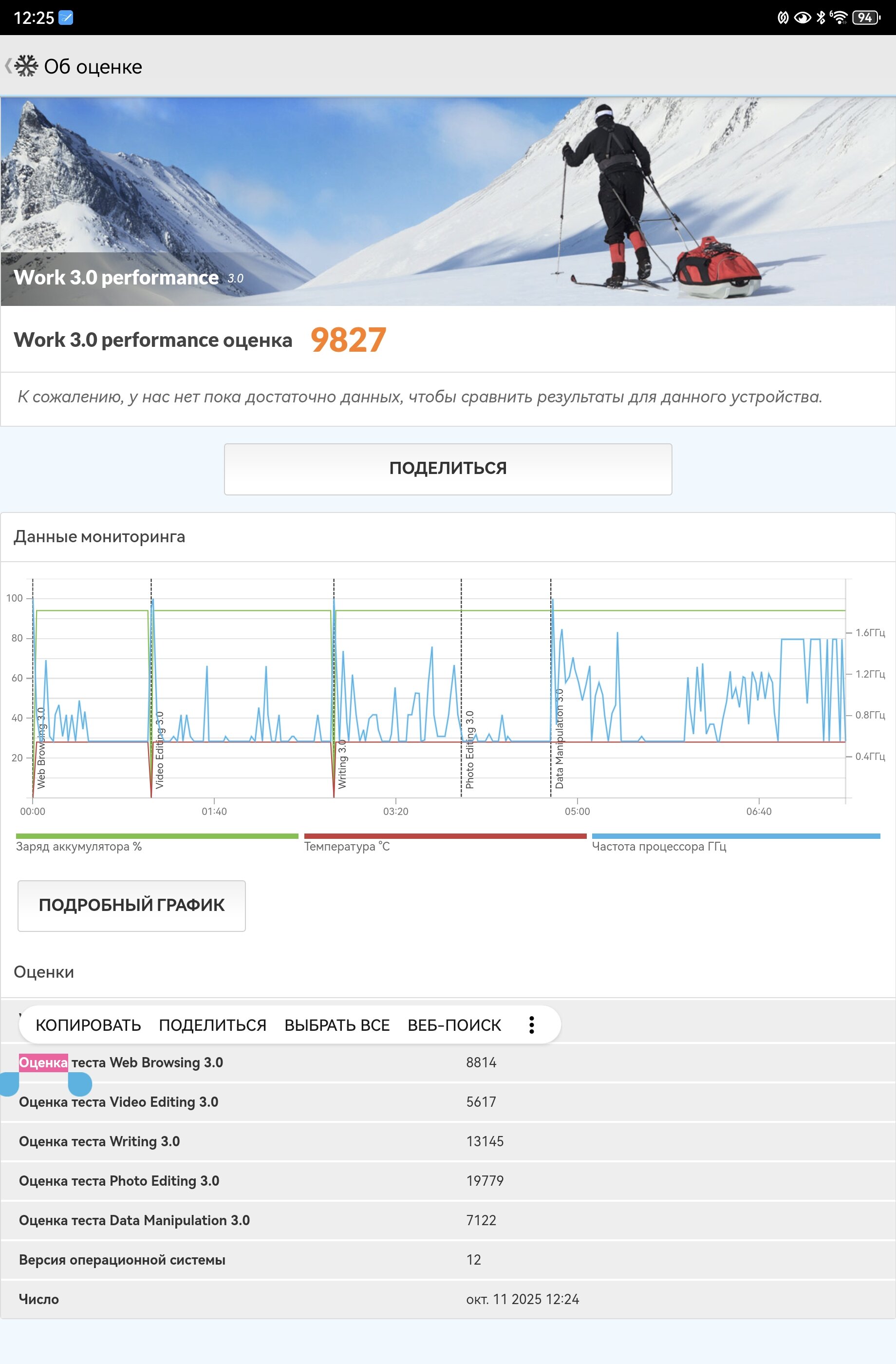 «Железо» планшета очень неплохо себя показало в различных синтетических тестах, набрав немало баллов, но куда важнее, что гаджет себя отлично зарекомендовал в реальных сценариях эксплуатации. Операционная система работает очень шустро, пользовательский интерфейс реагирует без малейших подтормаживаний, а режим многозадачности позволяет существенно повысить свою эффективность.