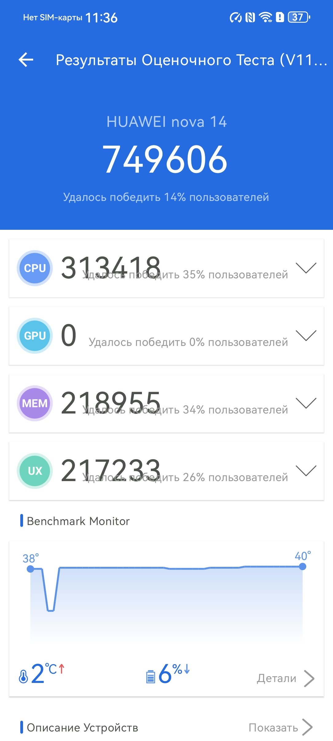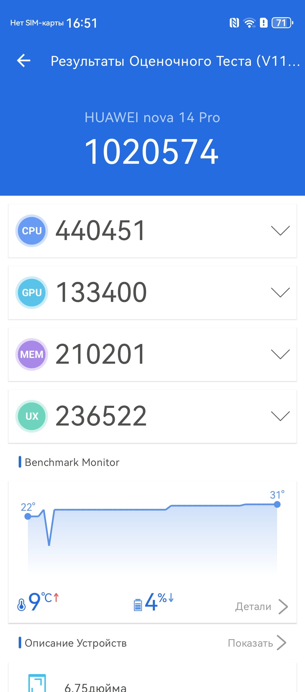 Есть у «железа» смартфонов и другое преимущество — базовый nova 14 отлично справляется с длительными высокими нагрузками, не огорчая заметным троттлингом. У nova 14 Pro, к сожалению, периодические просадки всё же происходят.