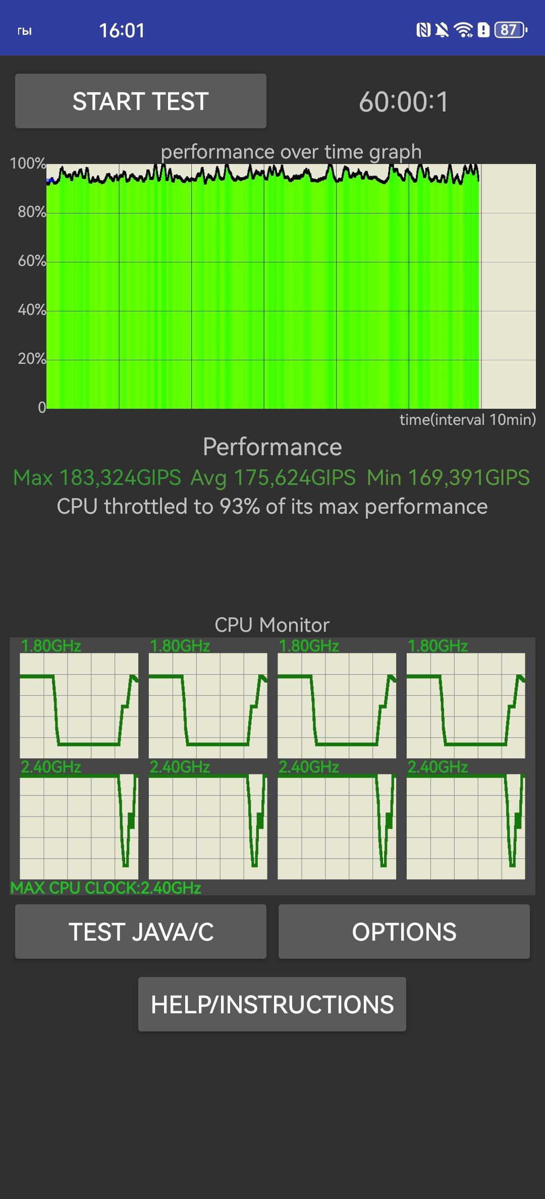 Преимущество же системы на кристалле в том, что она достойно справляется с длительными пиковыми нагрузками. Безусловно, чтобы предотвратить перегрев, процессор в стресс-тестах слегка сбрасывает тактовую частоту чипа, но просадки не настолько значительные, чтобы это заметно сказалось на опыте эксплуатации устройства.