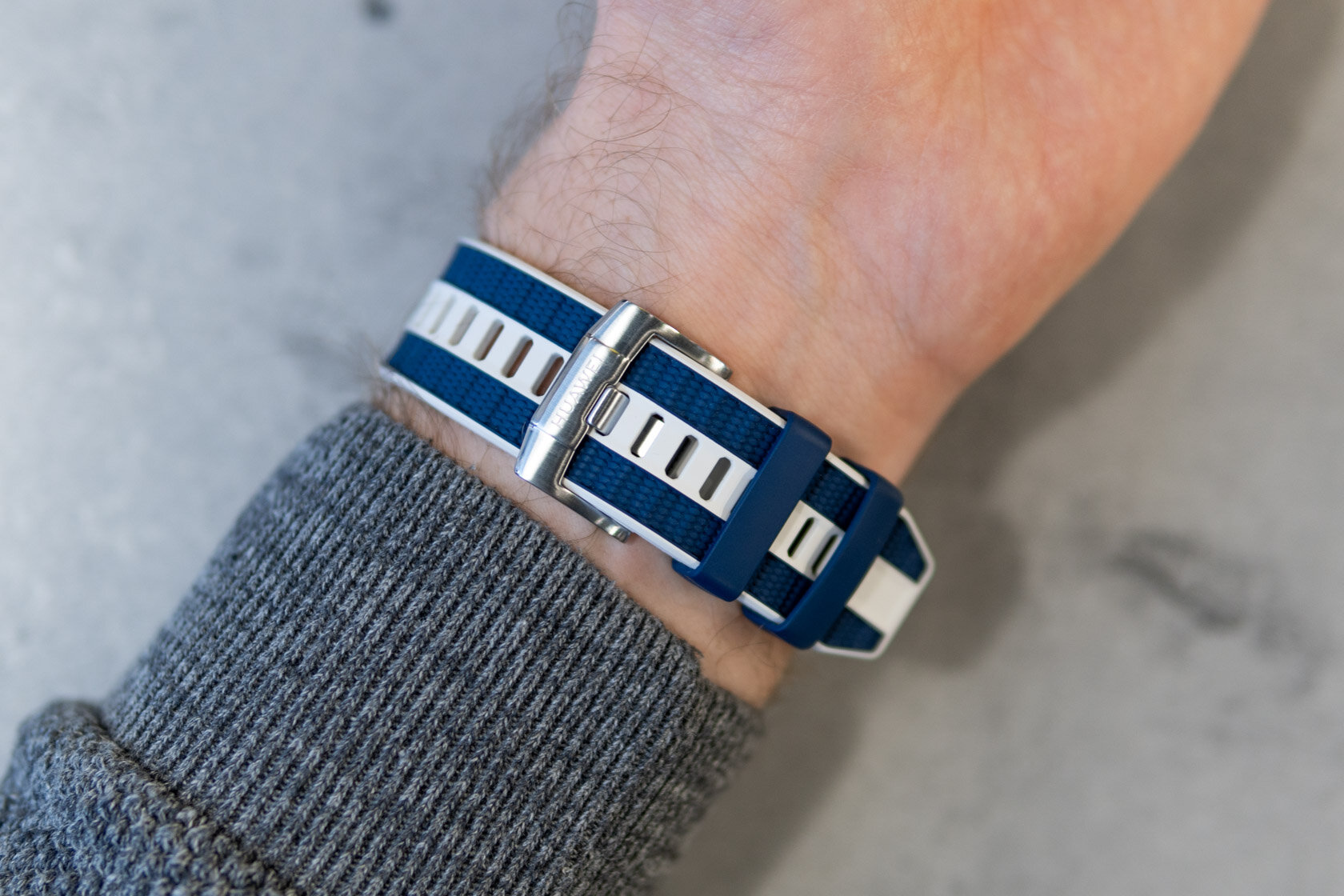 Ремешок тоже понравился — он изготовлен из фторэластомера с волнообразной текстурой и двухцветным оформлением.