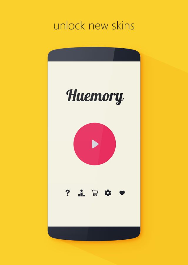 Головоломка Huemory отлично тренирует память игрока. Геймплей Huemory очень прост: сначала игроку показывается поле, определенным образом заполненное разноцветными элементам; после этого цвета элементов пропадают, и они становятся серыми, а игроку нужно заполнить их цветом в соответствии с тем, что ему демонстрировалось ранее.