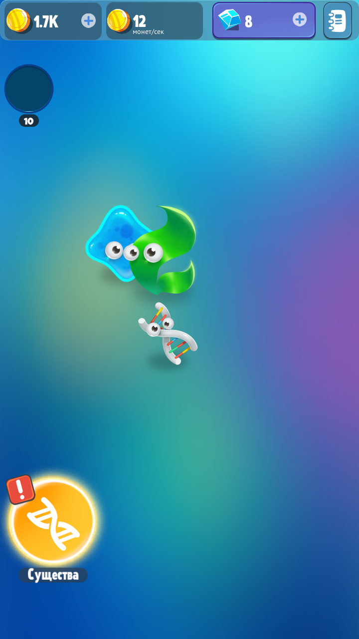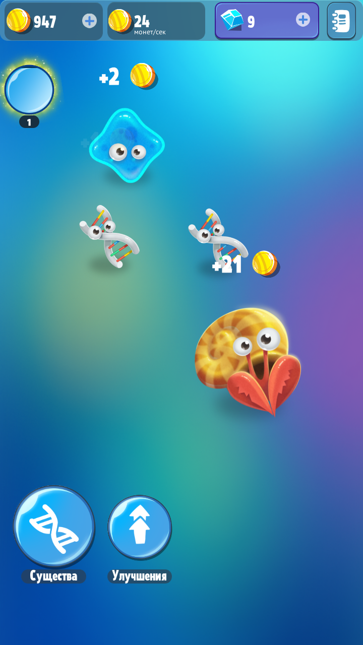 Наша игра прекрасно развеселит вас и объяснит все этапы эволюции. Пройдите путь от клетки до человека. Поиграв с генетическим годом простейших, вы создадите более сложное существо. А также а нужно получать кристаллы что бы эволюция шла быстрее. Скрещивая тех или иных существ, вы получите не только ящериц, змей, рыб и прочих животных, но сможете создать киборгов и роботов. Яркий интерфейс и прикольная рисовка персонажей не даст вам заскучать. Наша игра не имеет ограничений по возрасту, в нее могут играть как дети, так и взрослые!