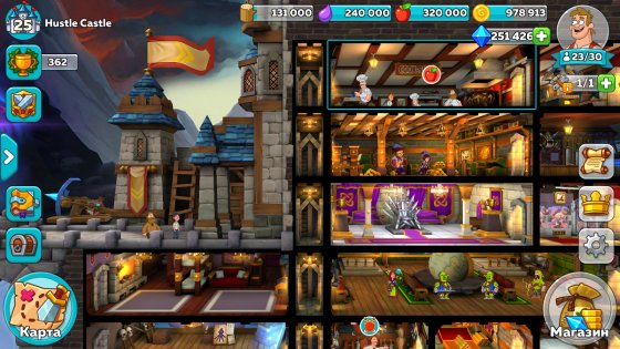 Hustle Castle – сюжетная игра захватывающая и интригующая. Возможность почувствовать себя богатым хозяином замка и влиятельным лордом, с подданными и своей армией солдат.