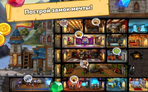 - Строительство. У тебя есть возможность строить новые залы и комнаты в замке, и усовершенствовать то, что уже есть. Создай свой замок мечты! Не откладывай, начни делать это сейчас!